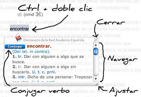 Esta extensión posibilita que al hacer doble clic sobre una palabra, manteniendo presionada la tecla “Ctrl”, aparezca un globo con la definición dada por la Real Academia Española para esa palabra; y, si la palabra corresponde a un verbo, se puede acceder a la conjugación mediante el botón "Conjugar".Google Translate